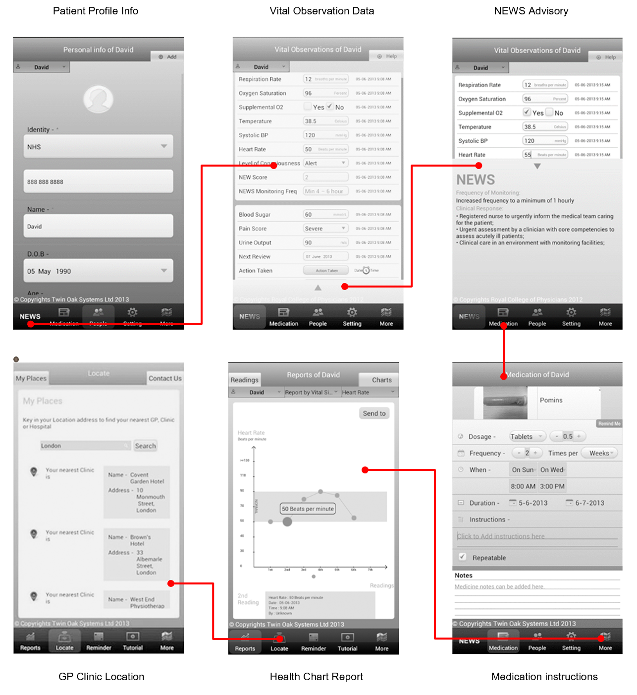Some examples of wireframes and Screen Flows are shown below -